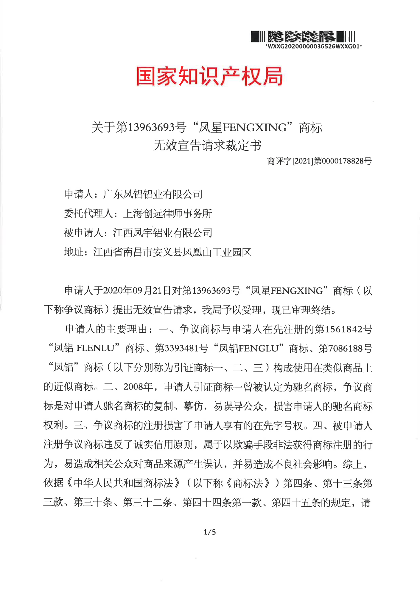温州辉知队 | 国家知识产权局:“凤星”商标无效