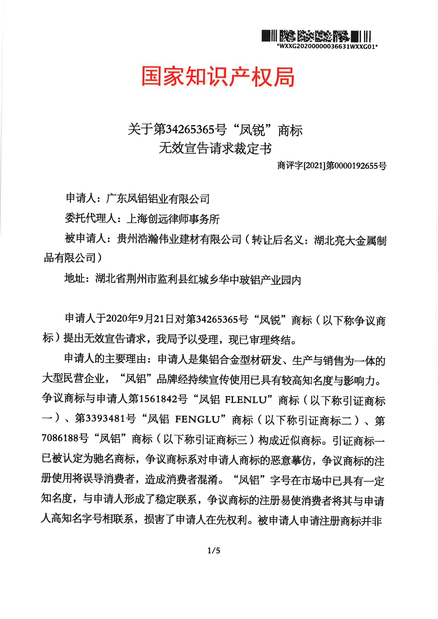 温州辉知队 | 国家知识产权局:“凤锐”商标无效